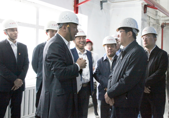 范業(yè)群、王國(guó)茂、韋毅民陪同王兆力、楊?lèi)?ài)國(guó)、劉海濤在中控室視察